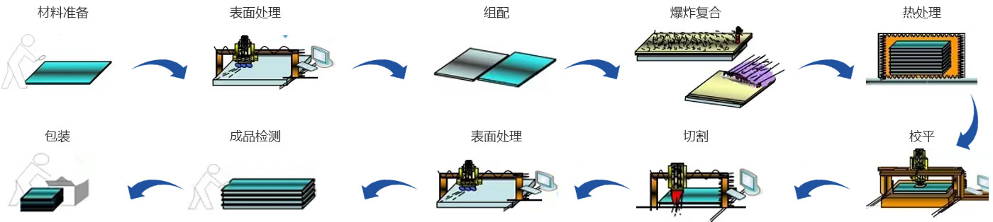 研制開發出鈦/鋼、不銹鋼/鋼、鋁/鋼等五十多種不同規格的金屬復合材料,形成了稀有、有色、黑色金屬復合材料產品系列
